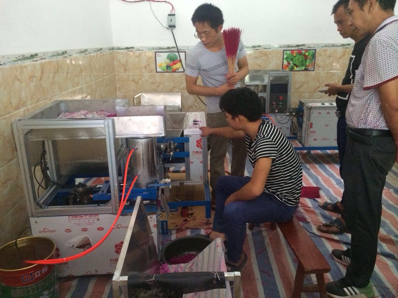 制香業(yè)是全國市場(chǎng)上永不飽和的一次性消費(fèi)品,燒香在我國已有悠久的歷史。全國各地?zé)o論城市、鄉(xiāng)村都燒香。如春節(jié)、清明、初一、十五、七月半、拜佛、求神、廟會(huì)、奔喪都有燒香的習(xí)慣,燒香在我國有著巨大的市場(chǎng)(縣級(jí)城鎮(zhèn)按10萬戶計(jì)算,全國每年燒香2億公斤以上),但由于傳統(tǒng)制香工藝繁雜,生產(chǎn)速度慢、灰塵多、成本高,在生產(chǎn)經(jīng)營和消費(fèi)各環(huán)節(jié)中嚴(yán)重制約了該產(chǎn)品的生產(chǎn)和發(fā)展。手工生產(chǎn)經(jīng)營者老早就盼著制香機(jī)的問世。無疑“實(shí)用新型制香機(jī)”以其工藝簡(jiǎn)單、生產(chǎn)速度快、無污染、成本低廉等自身優(yōu)勢(shì)決定了它有巨大的市場(chǎng)潛力和強(qiáng)勁的市場(chǎng)競(jìng)爭(zhēng)力。